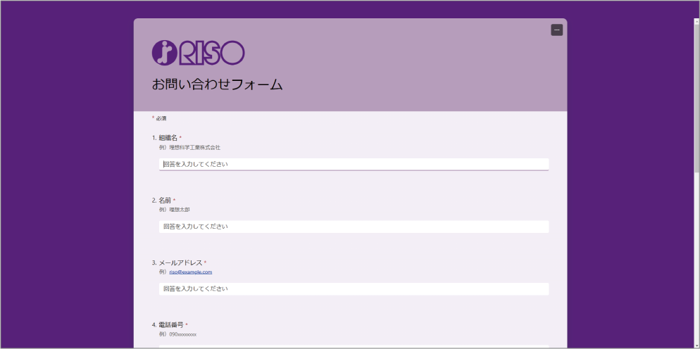 問い合わせ:以下の問い合わせフォームを表示します。画面の指示に従ってお問い合わせください。