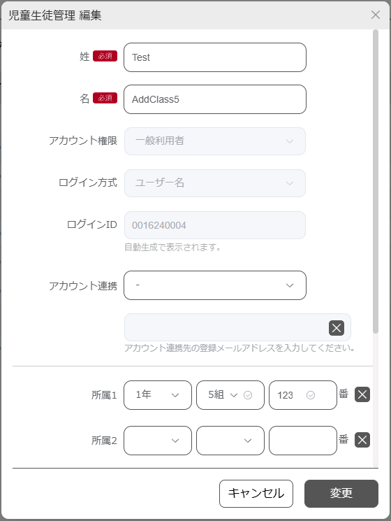 児童生徒の情報を編集します。